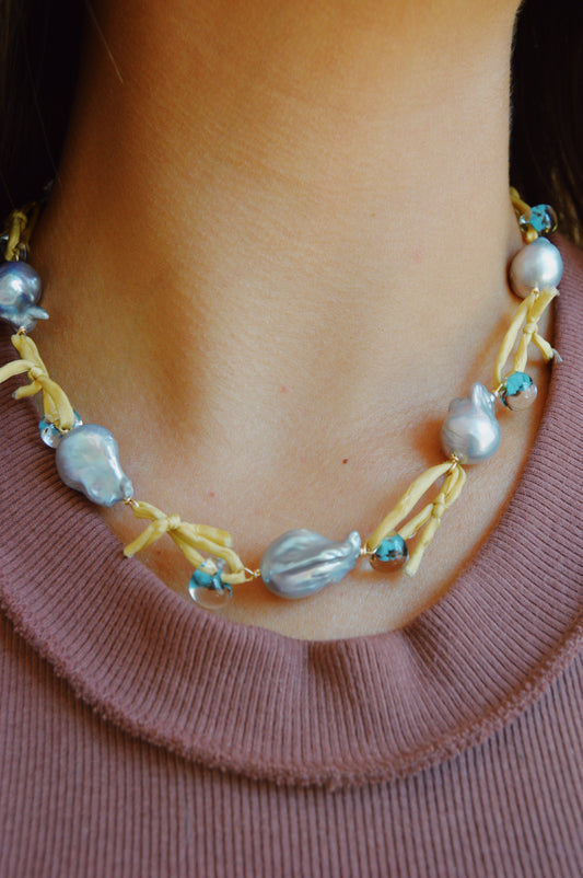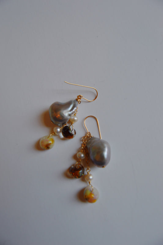Baroque and Glass Drops - Silver Pearls