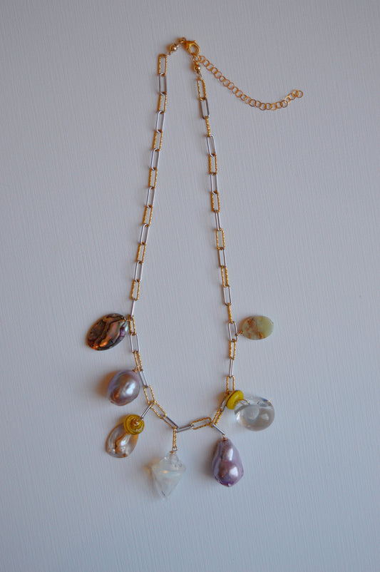 White Shell and Lavender Pearl Charm Necklace