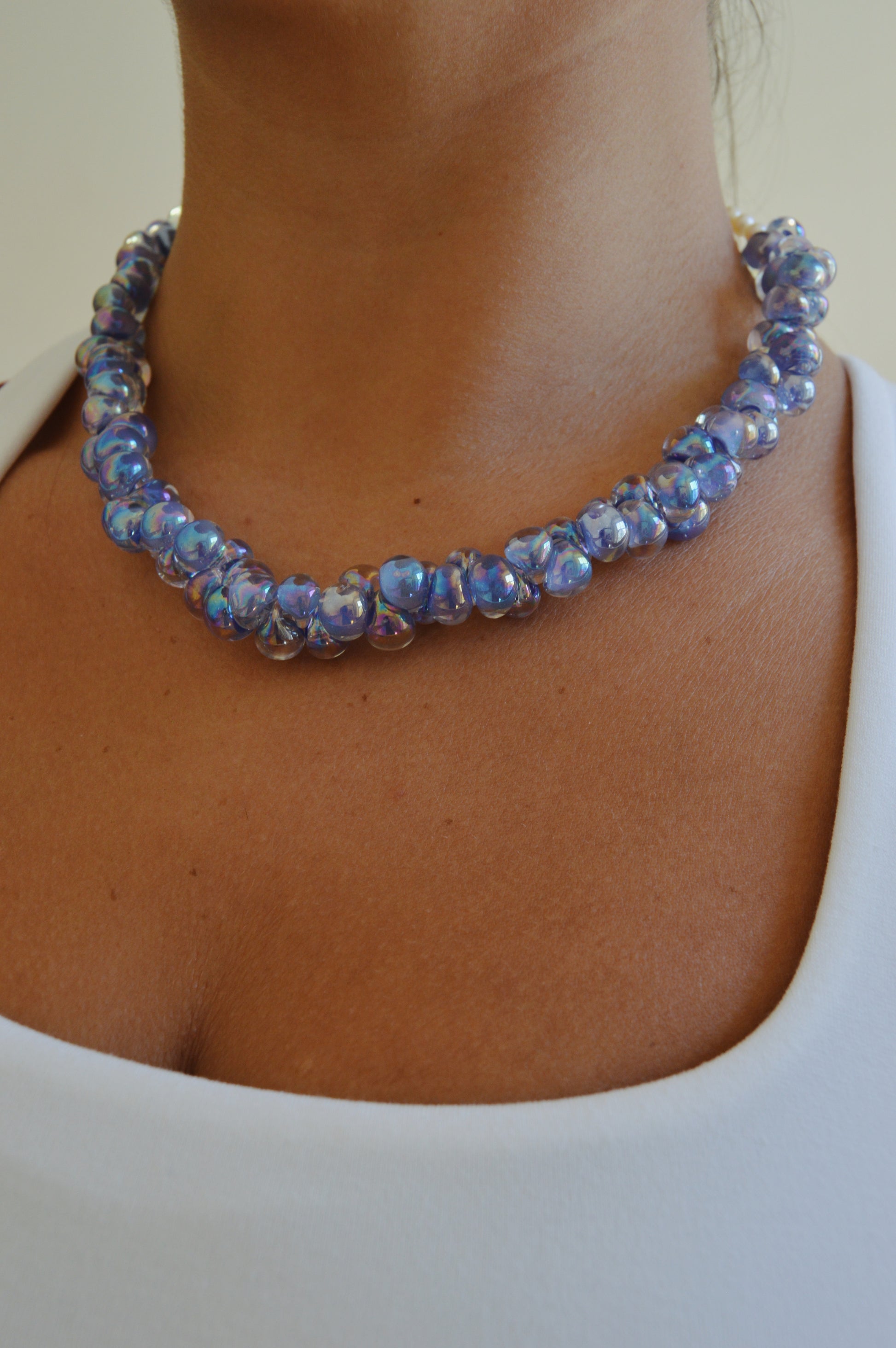 Handblown glass shimmer beads with cultured freshwater pearls and gold filled findings