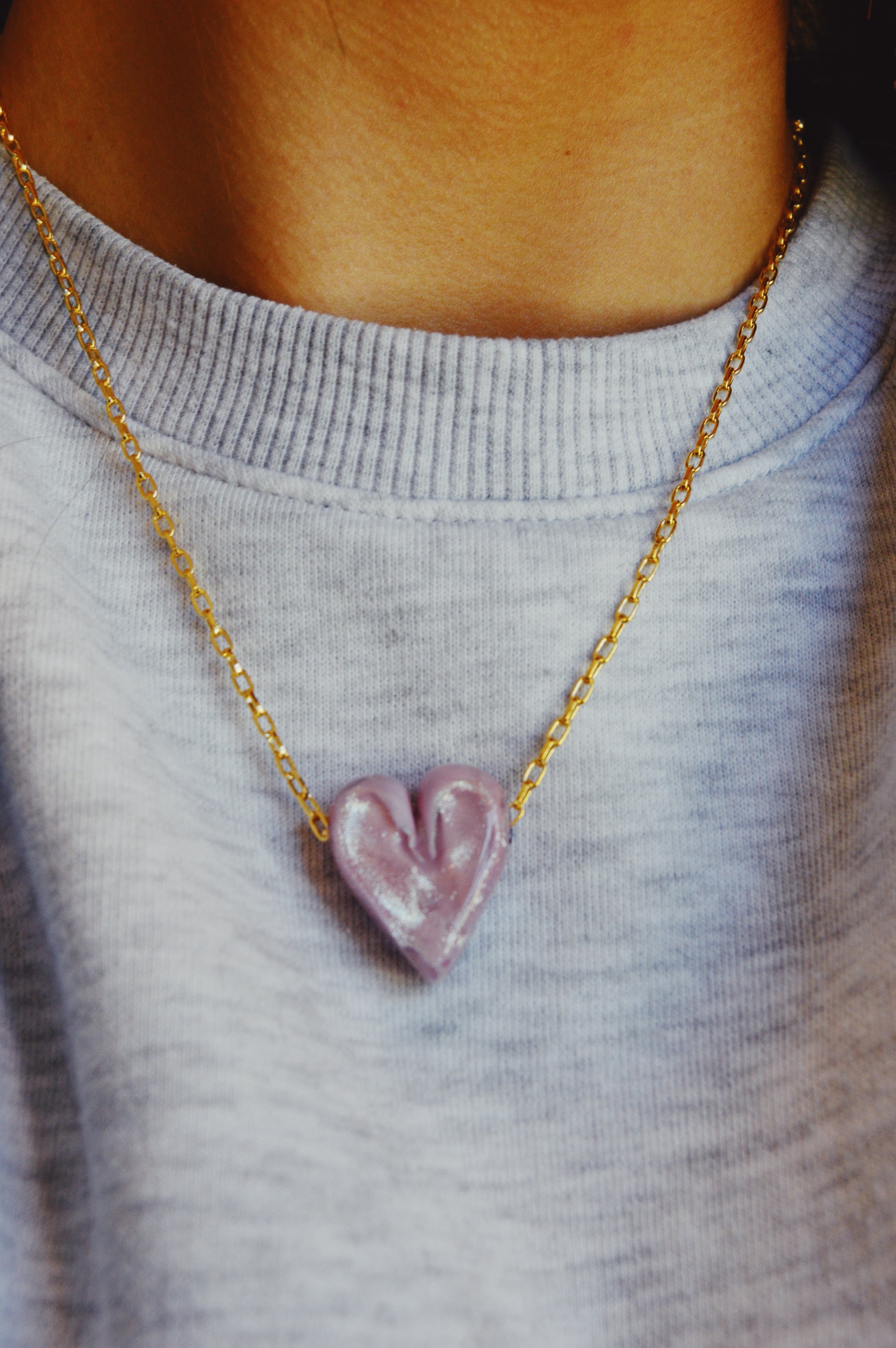 Handblown glass heart on a 14k gold filled chain and gold filled findings
